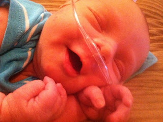 I wish I could say that we lived happily ever after since, but that wasn't to be. When we finally left the recovery room and were moved up to the OB floor we were so excited to finally be recovering and to have Max here with us. We were not in the room 5 minutes when my nurse, while checking him out, tells us that his temperature was a little low, and so she wanted to check his blood sugar. As they were checking his blood sugar, he started breathing really fast, so they decided to run more tests. When they checked his white blood cells, they were really high, and so they moved him to the NICU and began testing and treating for an infection, which they told us would take at least 48 hours, possibly longer depending on how he reacted. He also had a bunch of amniotic fluid in his stomach, which was causing him to throw up a lot, so he had to have his stomach pumped.